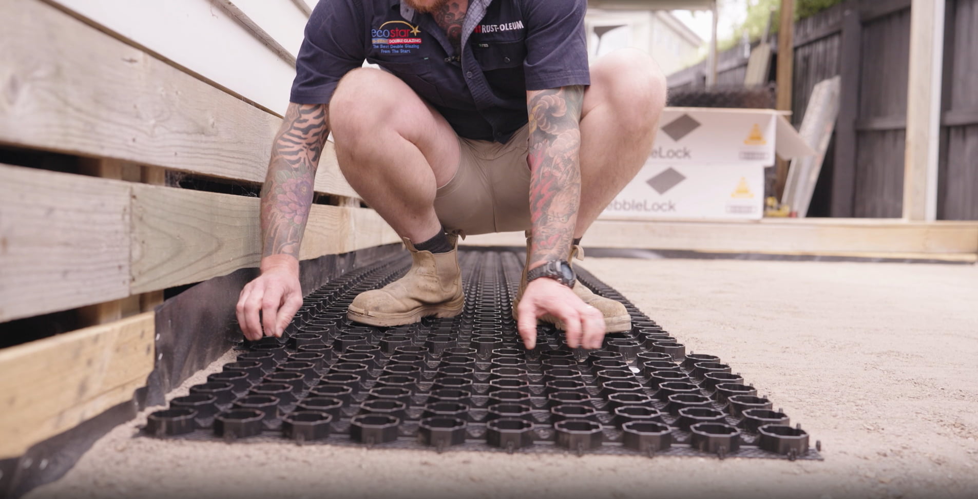 Perhaps the most important aspect of creating a pebble driveway on sloped land is stabilising the pebbles with Permeable Paving. With options to choose from, Permeable Pavers are what lock pebbles and gravel in place. PebbleLock is ideal for 7-14mm decorative stone and pebble driveways with light use traffic. With permeable paving, water won’t wash the stones away, vehicles won’t push stones aside, and because they’re tough, they will remain flat. You can use them on slopes up to 11o. For any surface stones sitting above the pavers that do shift, it’s just a matter of brushing them back into place.